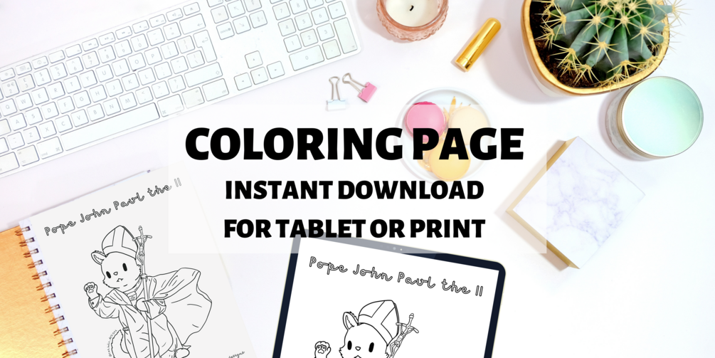This is a PDF & PNG copy of our Cat-holic Designs Pope John Paul the II that you can make as many copies of as you want! We do kindly ask for you to NOT share this product for others to print themselves, but please direct them to our page to print their own!